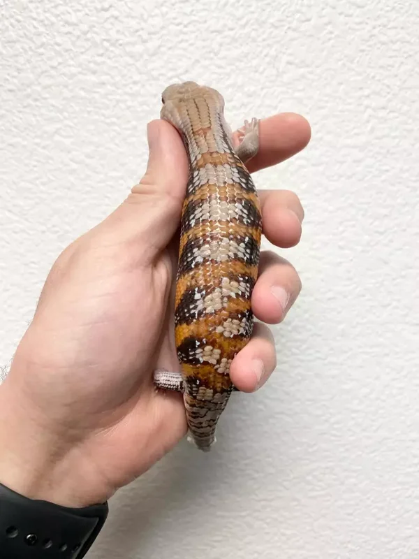 We have this beautiful High Orange Northern Blue Tongue Skink available. It’s currently feeding on crickets, mealworms, high protein canned dog food mixed with veggies and fuzzy mice.
